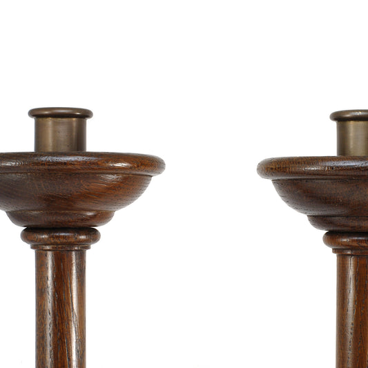 A Pair Of Oak Candlestick Holders Arts And Crafts Movement ANTIQUE