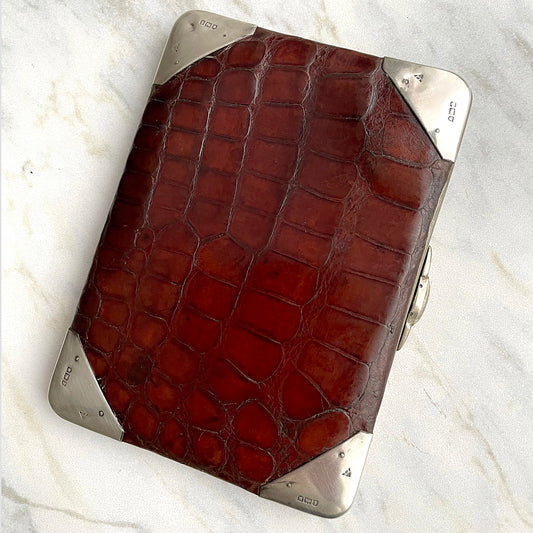 Crocodile Skin & Leather Wallet Silver London Edwardian (1904) ANTIQUE