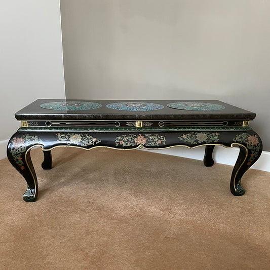 Black Lacquered Coffee Table & Inset Cloisonne Discs China 1920's ANTIQUE
