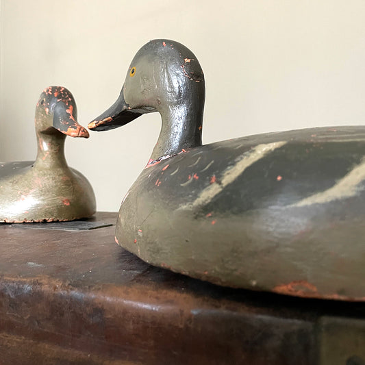 A Pair Of Wooden Decoy Ducks Carved & Hand Painted 1920's ANTIQUE