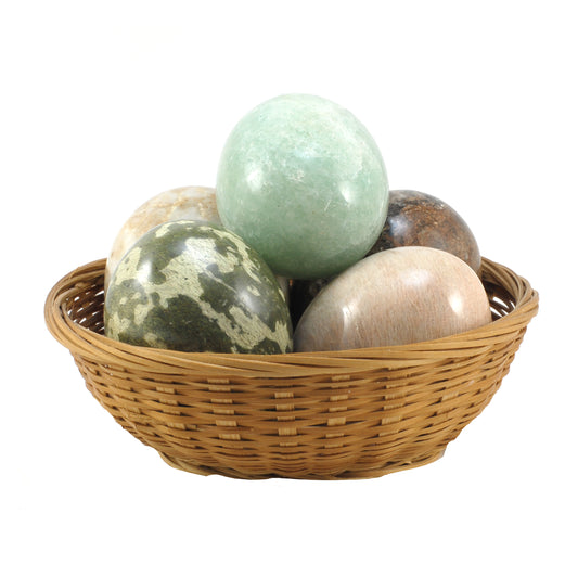 A Set of Five Semi-Precious Stone Eggs With Stands (5) COLLECTABLE