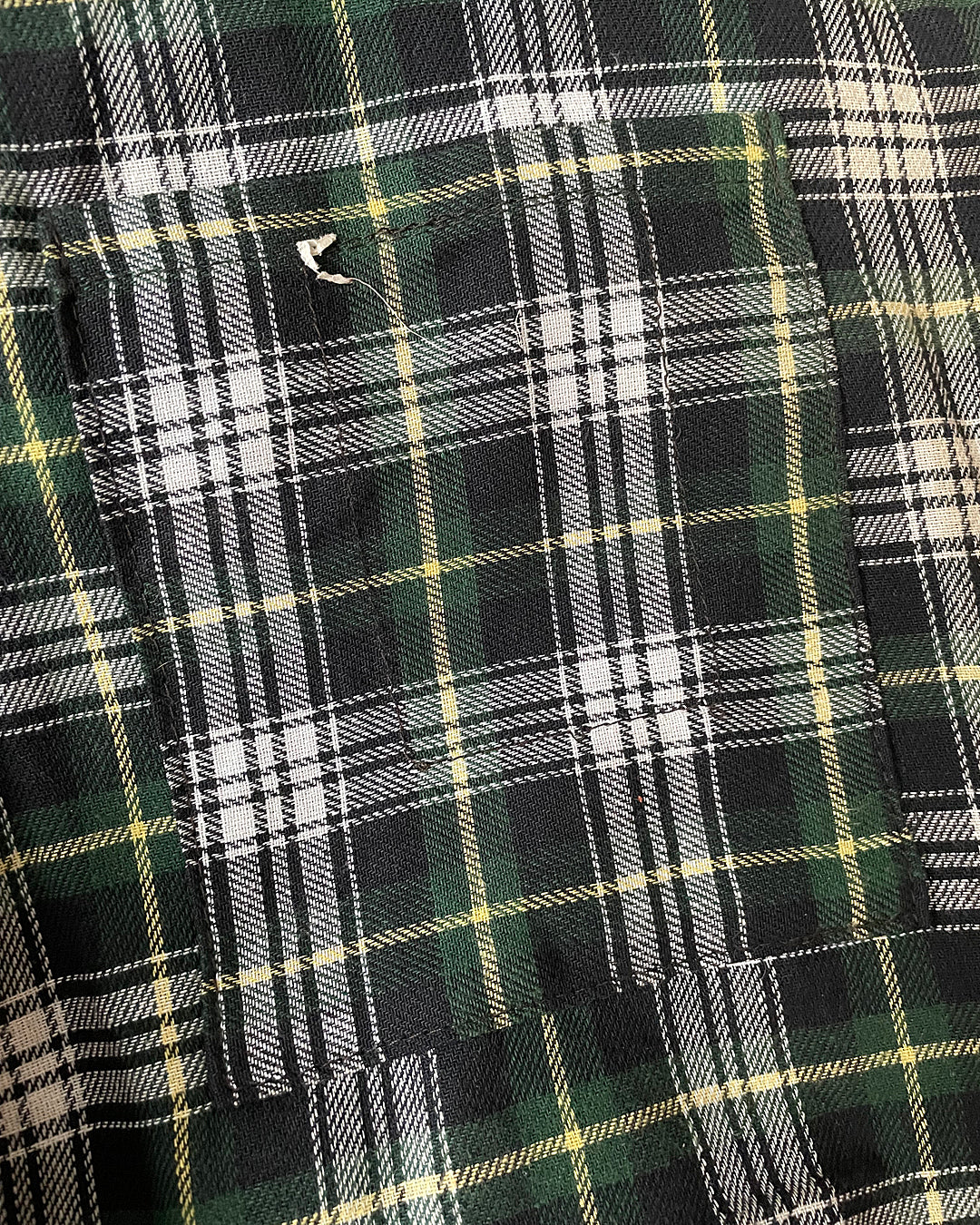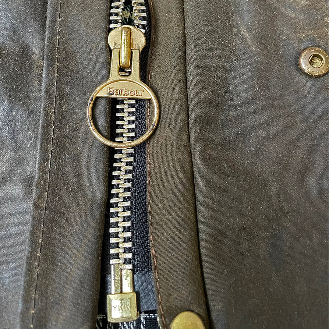 This vintage Barbour NATO jacket is in excellent condition. It has led an easy life as there are few signs of wear. The interior and exterior are without rips or other damage. All brass fittings (now nicely weathered) are present and fully working and both YKK zippers run without effort. At the bottom of the jacket where the lining is attached to the hem, the tartan fabric is showing faint signs of wear, small marks and a few areas with some discolouration.