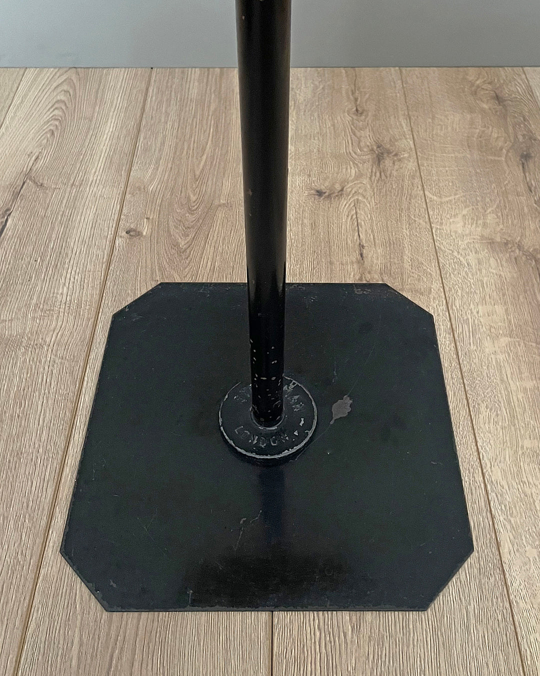 This female shaped mannequin was commissioned and used by London firm R. D. Franks, a fashion specialist bookshop established in 1877 (sadly now closed). It came to us fitted onto a later display stand, ironically made by rival Parisian firm Stockman. Painted in striking black and embossed with the Stockman name around the centre column.