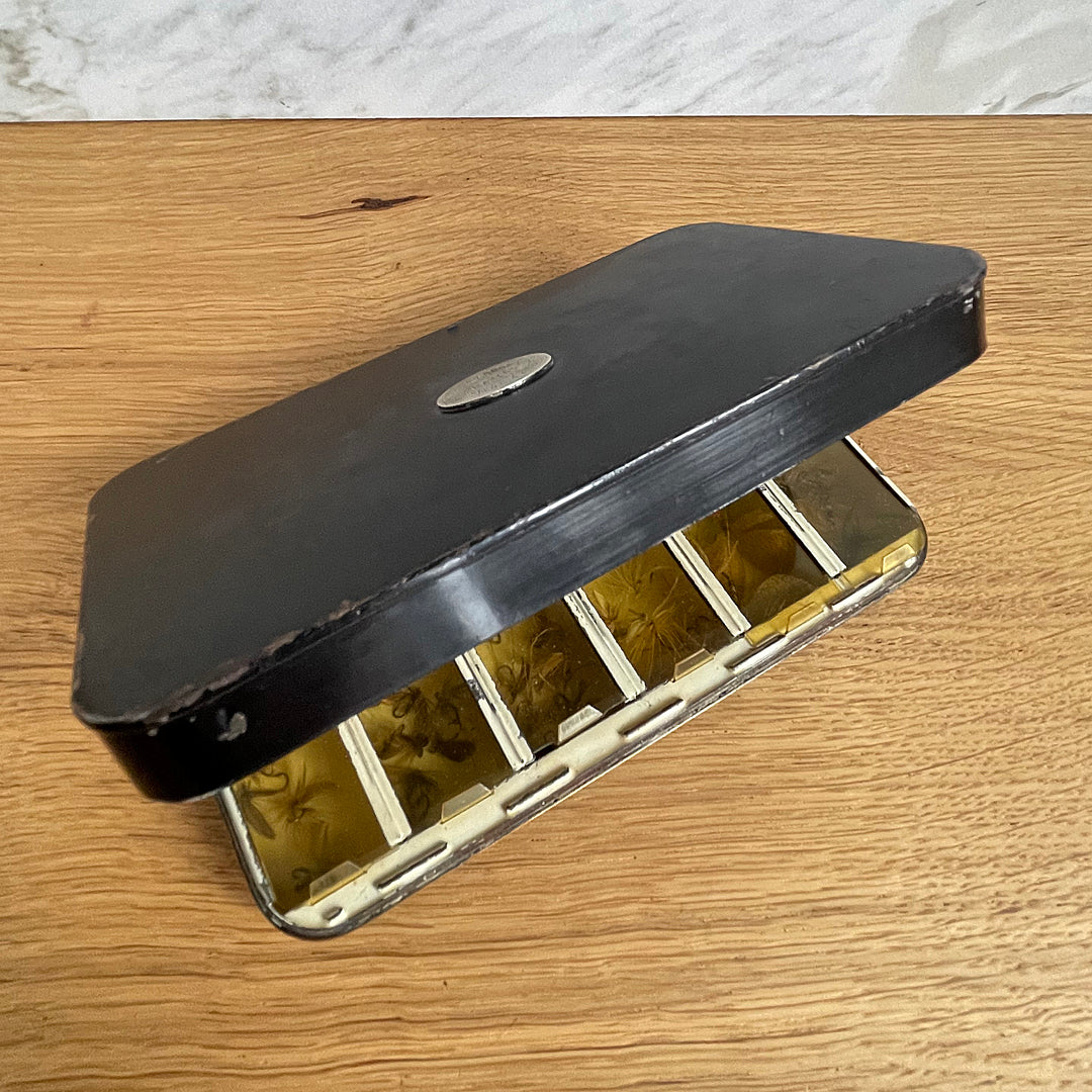 Hardy Bros Alnwick Black Japanned Dry Fly Fishing Box & Flies ANTIQUE