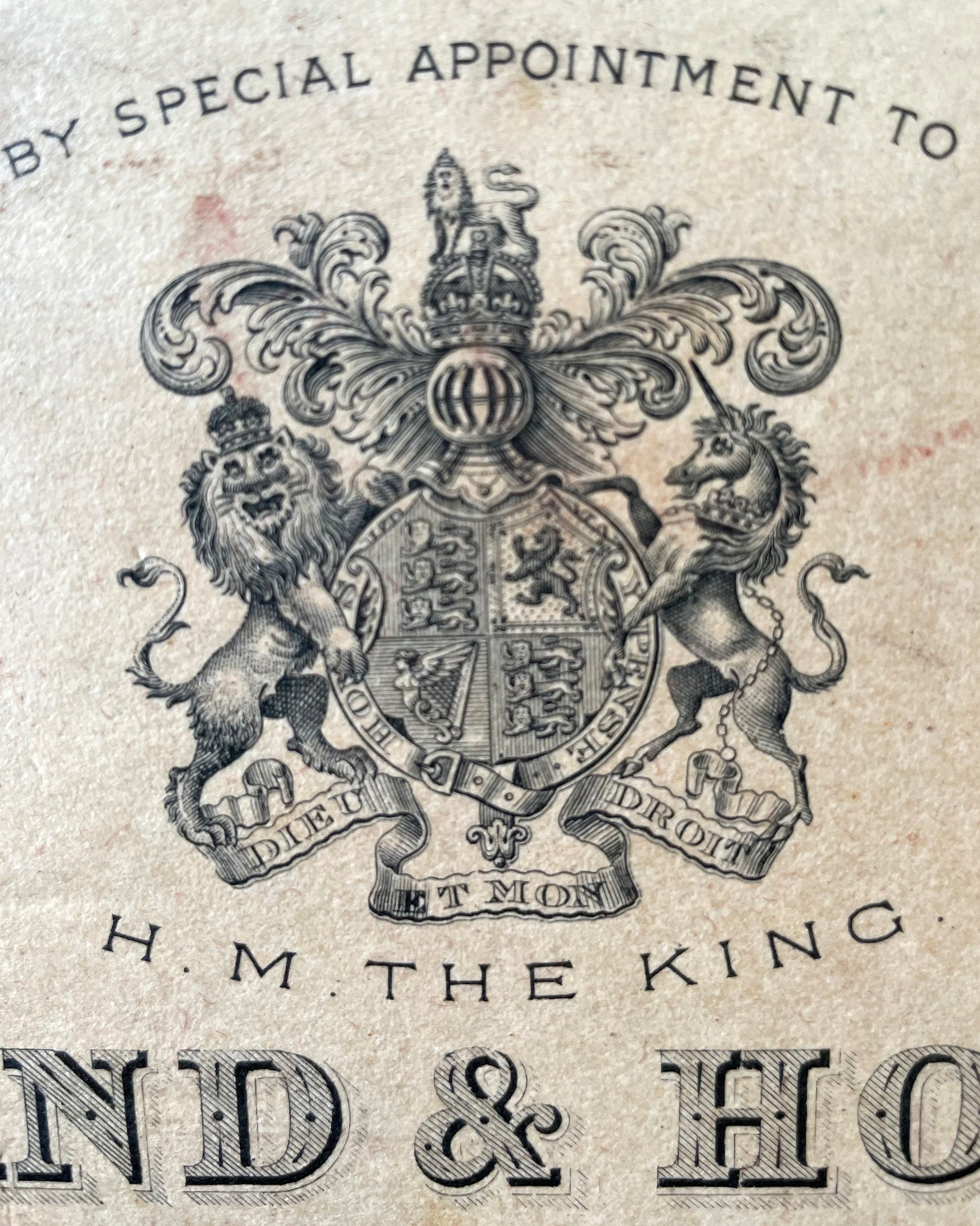 A beautiful Edwardian double gun case with a fitted interior for two 30 inch barrels. Made for Holland & Holland, one of the world’s best rifle and shotgun manufacturers. Its sturdy wooden construction is covered by leather. The original interior of burgundy baize is still present complete with dividers and covers. The lid is fitted with its original brass spring catch, unfortunately we do not have the key. Fitted with a strong carrying handle and two leather straps. Holland & Holland’s paper trade label is fitted to the inside of the lid.
