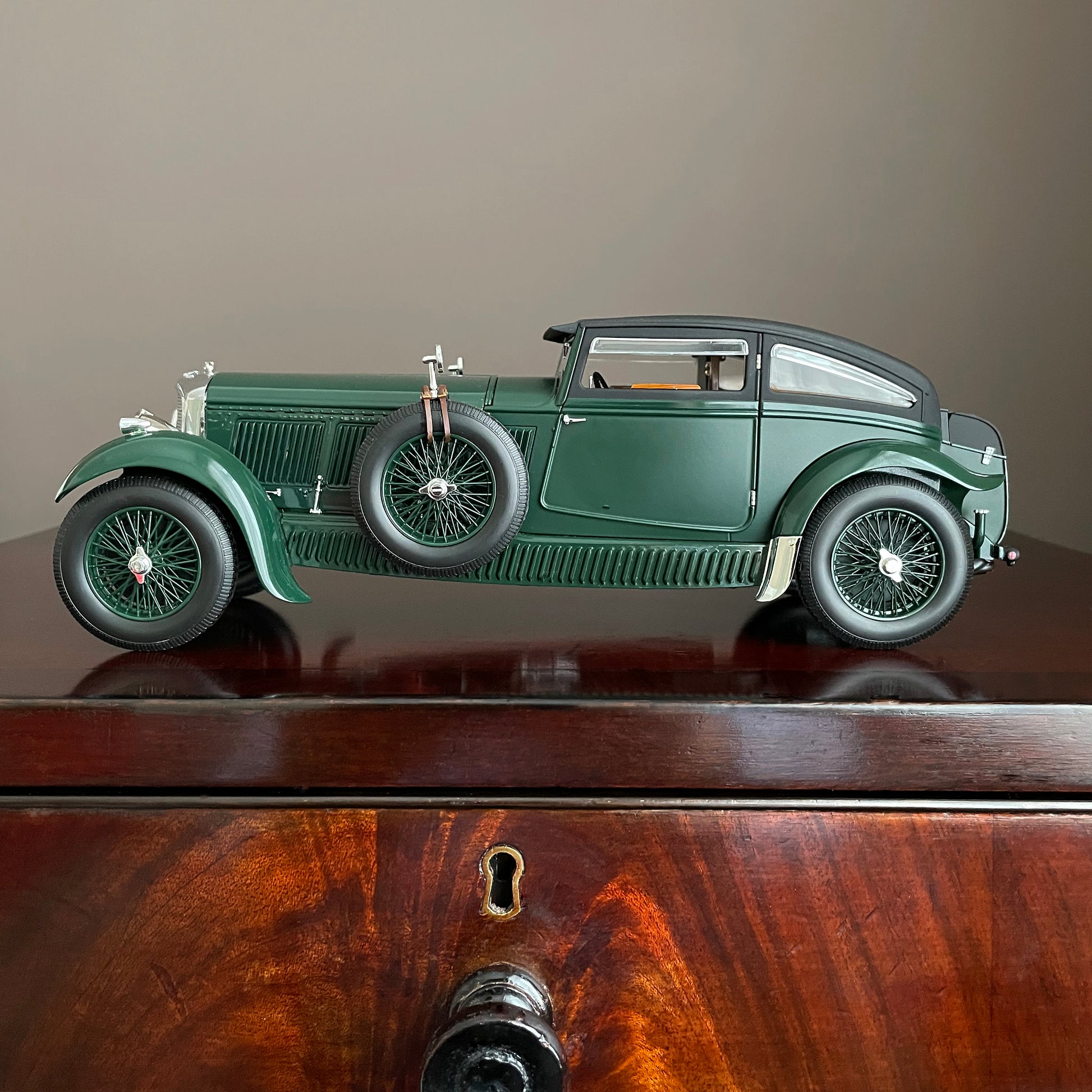 Cars always make a great subject for display in any interior. The styling of this particular 1930's model will work well with an Art Deco styled piece of furniture or room. A desirable scale model of one of the most famous Bentley cars ever.